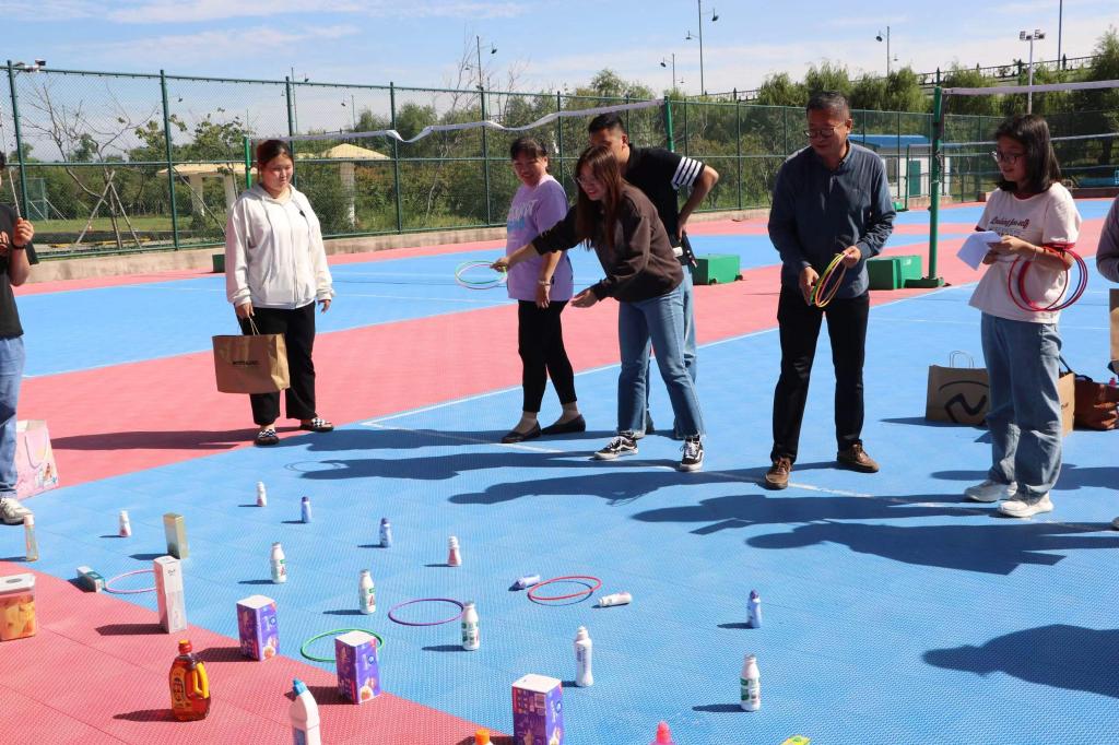活动现场欢声笑语,教师们欢聚在一起,用别样的趣味运动迎接属于我们的节日。个人项目中,大家全力投入,现场气氛轻松喜悦。在团体赛项目中,教师们团结一致,默契配合,欢呼声和呐喊声不断,增强了教师们的凝聚力,拉进了教师们的距离。