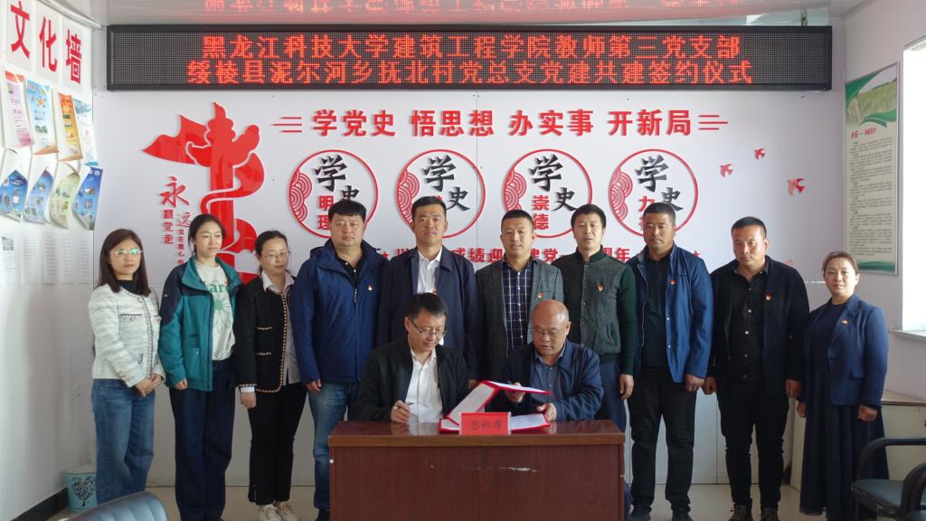 建筑工程学院教师第三党支部按照促进党建和教研深度融合的工作思路,通过“党建+实践”等多种途径,坚持知行合一,发挥城乡规划学科和专业优势,服务乡村建设实践,先后与绥棱县尼尔河乡抚北村、同江市向阳镇同富村等村党总支(支部)结成党建共建联盟,着力构建“资源共享、优势互补、互帮互助、校地联动”的党建工作格局,努力把支部打造为乡村振兴战略的先锋队。