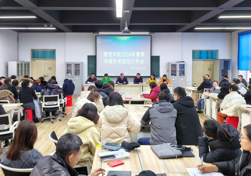 聚焦高质量,启航新学期。为统筹规划新学期发展方向,确保开学各项工作平稳有序开展,2月23日,管理学院召开了2024年春季学期开学启动工作大会。学院领导班子成员和全体教职工参加会议,会议由学院党委副书记徐海英主持。
