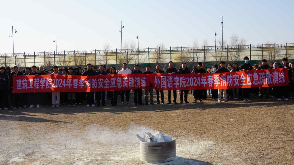 为深入贯彻落实习近平总书记关于校园安全工作重要指示精神,按照学校2024年《“永葆赤心 立德践行 勤学善思 笃行担当”主题教育活动方案》和《安全隐患排查百日会战专项行动方案》的要求,提高学生自救防范能力与应急处理能力,建筑工程学院与外国语学院于4月9日联合开展了2024年春季消防安全应急疏散演练活动。保卫处副处长卢同刚、建筑工程学院党委副书记展跃、外国语学院党委副书记李伟、保卫处防火科科长孙景岩、两个学院全体辅导员以及600余名学生参加此次活动。