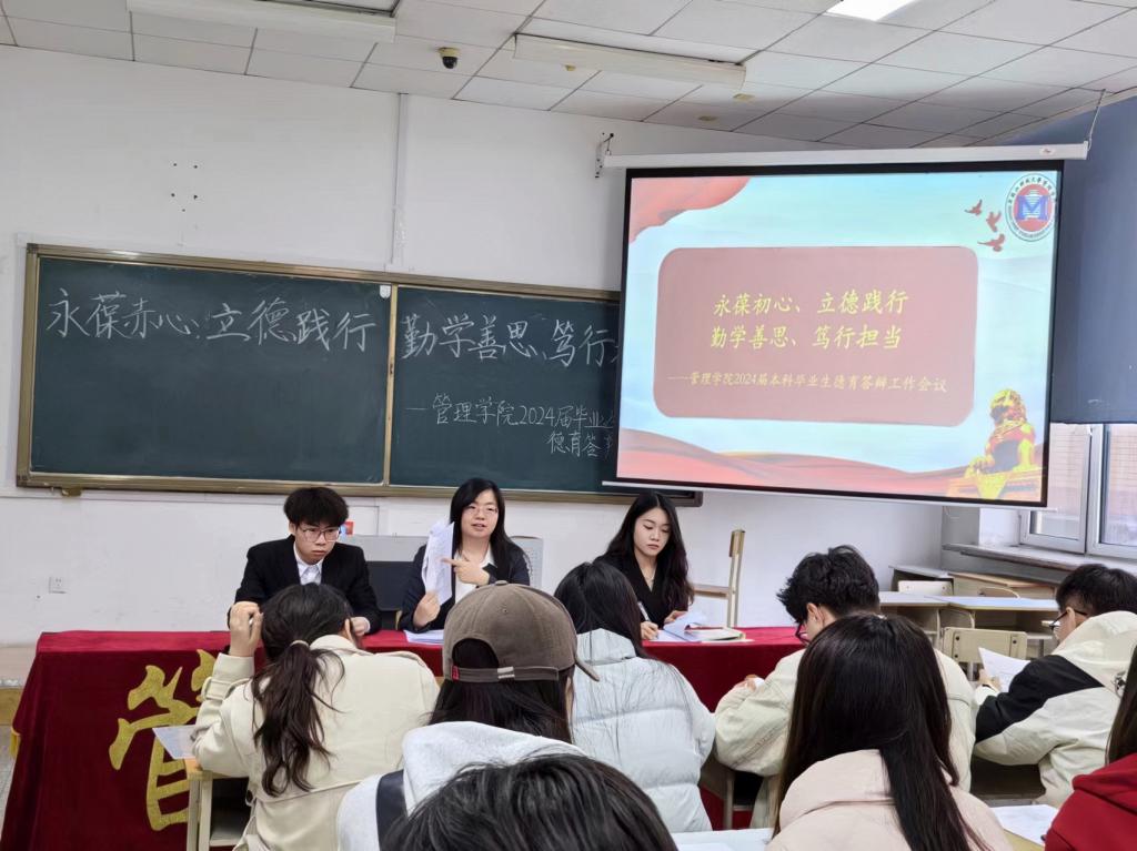 为落实学院开展“永葆赤心 立德践行 勤学善思 笃行担当”主题思想教育活动,按照“育人为本、德育为先、能力为重、全面发展”的总体要求,使“五育并举”的德育工作贯穿于学生培养全过程。近日,管理学院全面启动2024届毕业生德育答辩工作。