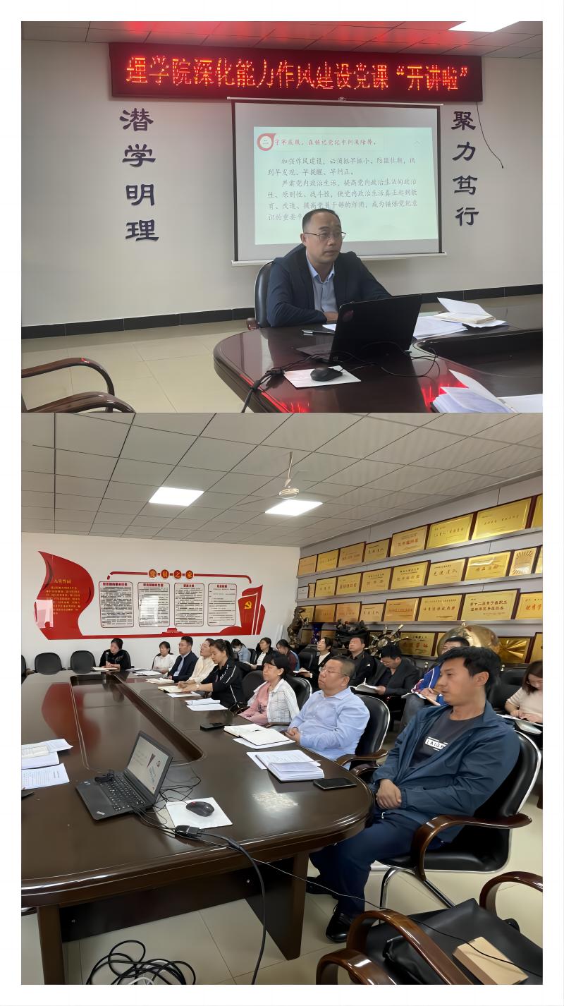 为进一步贯彻落实省委、学校党委关于深化能力作风建设的工作要求,锤炼“扎扎实实、踏踏实实、求真务实”的优良作风,学院党委于5月8日在二楼会议室开展了深化能力作风建设党课“开讲啦”活动,会议由学院党委书记贺龙军主持,学院中层干部及综合办、学工办、基础数学部党员教师参加了会议。
