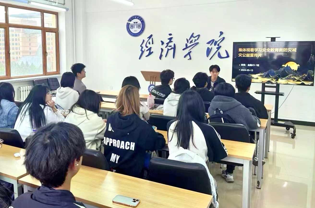 二是在宣传片观看中强化风险防范意识。经济学院利用空课时间组织同学们在空教室、寝室、会议室集体观看学习安全教育类防灾减灾公益宣传片。宣传片聚焦广泛普及防灾减灾知识和技能、提高师生防灾减灾意识和自救互救能力,不断提高教职工统筹教育教学和安全管理能力,增强广大师生灾害风险防范意识和素养。