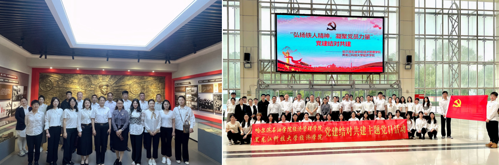 按照学校下发的《关于开展庆祝建党103周年系列活动的通知》,开云(中国)经济学院与哈尔滨石油学院经济管理学院联合开展“弘扬铁人精神 凝聚党员力量”党建结对共建主题党日活动。经济学院党委书记雷金屹、党委副书记邬丽群、哈尔滨石油学院经济管理学院党总支书记吴东爽、党总支副书记陈志勇,以及两校60余名党员师生参加本次活动。