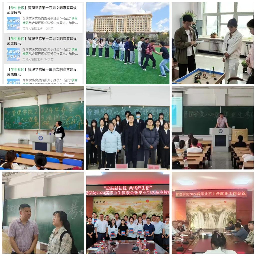 “晒”出好榜样。一是开展“榜样引领——国家奖学金颁奖仪式暨经验分享会”,通过榜样风采展示,促进学风建设再上新台阶;二是开展榜样力量进社区系列文化墙建设活动,充分发挥寝室文化育人功能,加快把学生社区打造成为学生党建前沿阵地,激发榜样力量新效能;三是开展2024届黑龙江省优秀毕业生风采展示系列活动,充分发挥朋辈榜样引领示范作用,激励管院学子以榜样为目标,规划好未来道路,脚踏实地,勤学苦练,踔厉奋发、勇毅前行。