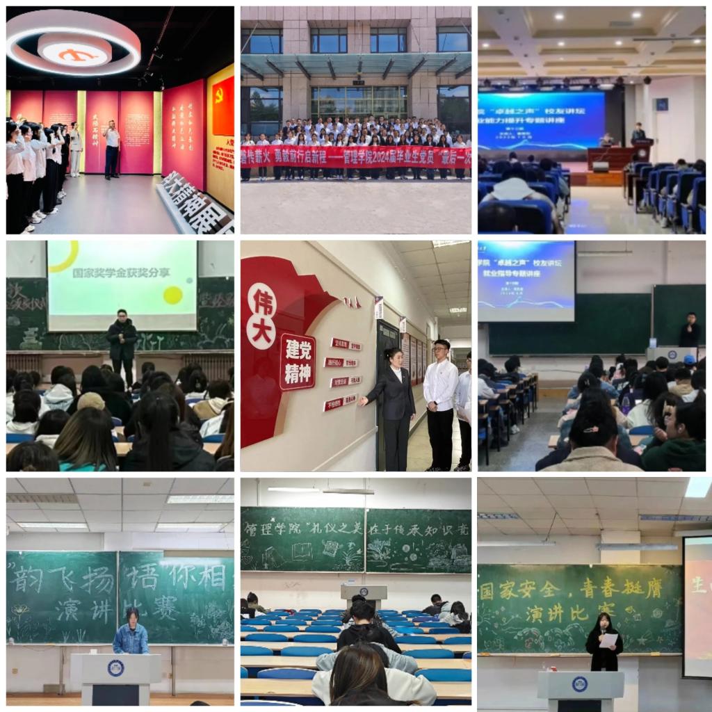 “讲”出好声音。一是开展“党员先锋行 朋辈共奋进”党建促学风主题活动,充分发挥党员先锋示范引领作用,共同营造良好的教风学风;二是开展第十四期“卓越之声”校友讲坛,以学风氛围为基础,着力促进管院学子全面成长;三是开展“学正立德 笃学力行”主题团活、“礼仪之美,在于传承”大学生知识竞答活动、第二届科创知识竞赛等活动,丰富学生课余生活,进一步促进学风建设;四是开展初心如磐传薪火 勇毅前行启新程——2024届毕业生党员“最后一次党课”活动,引导毕业生党员学纪、知纪、明纪、守纪,把爱国情、强国志、报国行融入毕业后的人生征途中,提升学生学习的内在动力,激发学习兴趣和学习主动性。