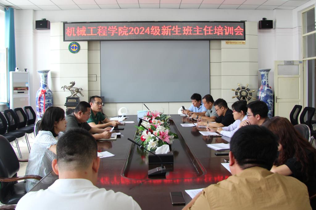 为进一步加强学院班主任队伍建设,切实提升新生班主任专业素养和业务能力,确保新生入学接待工作高效优质开展,8月20日下午,机械工程学院在二楼会议室召开了2024级新生班主任培训会。学院相关辅导员和2024级新生班主任参加会议。会议由学工办负责人戴劲主持。