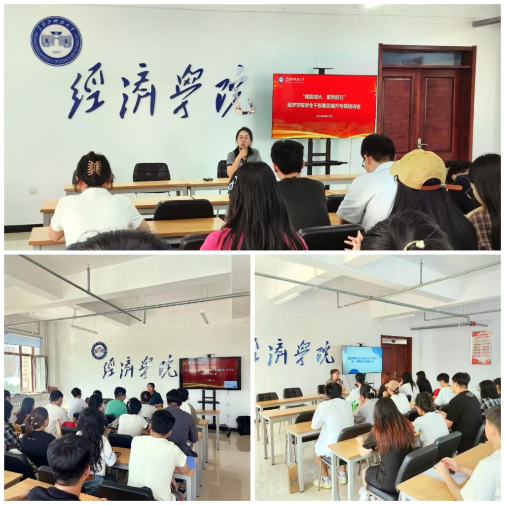 8月27日,经济学院召开“赋能成长,蓄势前行”学生干部素质提升专题培训会。通过培训会进一步巩固学生干部桥梁纽带作用,提高学生干部的综合能力和综合素质,增强“自我教育、自我管理、自我服务”意识,帮助全体学生干部进一步明确职责,努力提高自身综合素质能力,强化服务意识,以更加饱满的精神状态开展学生工作。