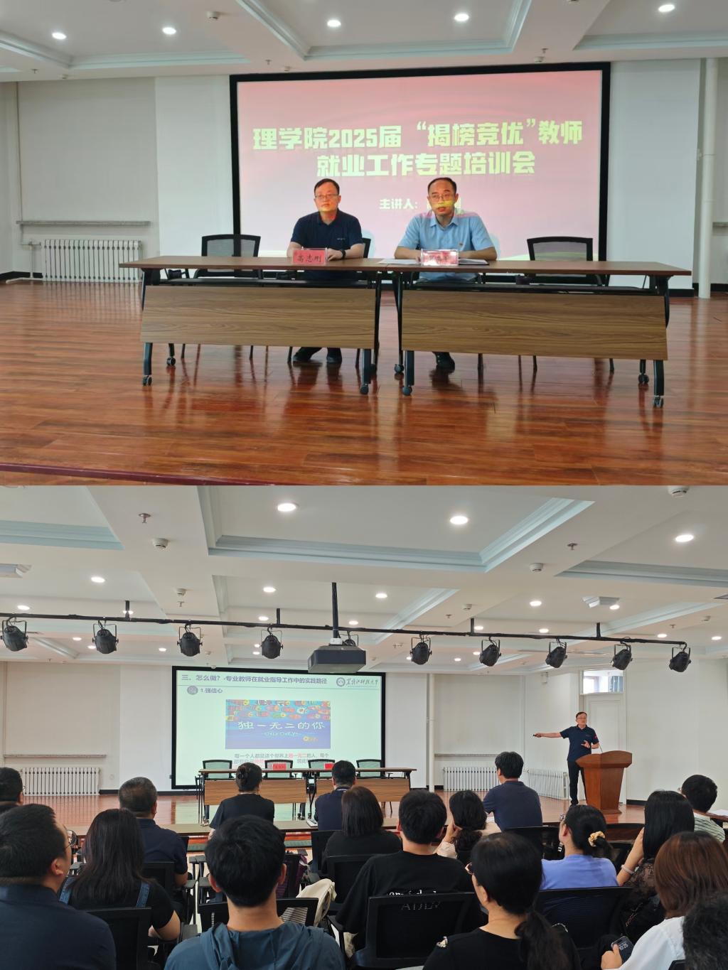 8月29日上午,学院在朝阳楼0239召开2025届“揭榜竞优”教师就业工作专题培训会。邀请招生与就业工作处处长高志刚作《专业(基础课)教师在毕业生就业指导工作中的角色定位与实践路径》专题讲座。高志刚从专业教师参与就业指导工作的重要意义、专业教师在就业指导工作中的角色定位和专业教师在就业指导工作中的实践路径三个方面进行指导交流。同时,希望学院通过全面落实“一把手工程”、“全员就业责任制”和“揭榜竞优”就业工作法,促进毕业生高质量就业,圆满完成2025届毕业生就业工作目标。