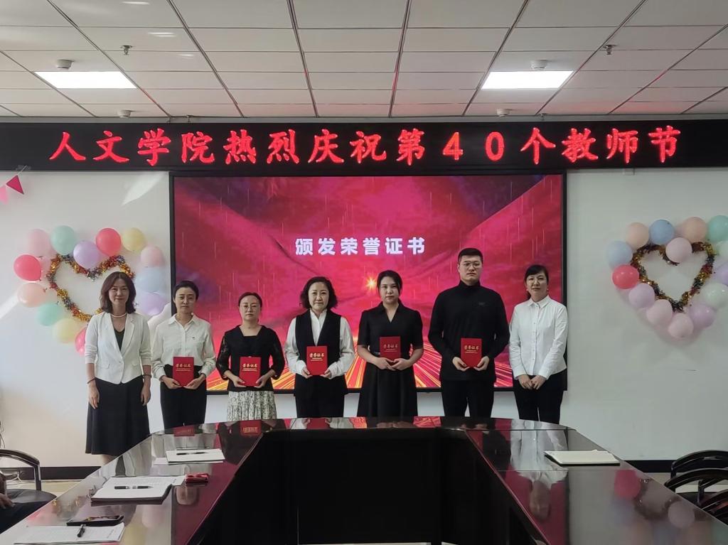在前期学院认真组织开展评选活动的基础上,副院长刘庆华宣读了《人文社会科学学院关于表彰学科、科研教育工作先进个人的决定》,院长曹景萍、党委副书记杨凤娟向学科建设先进个人、先进科技工作者颁发了荣誉证书。