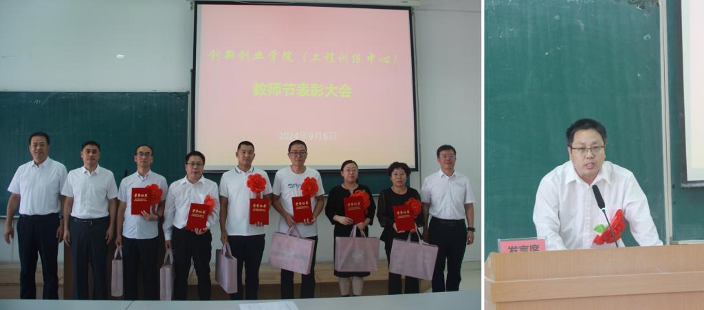 表彰大会上副院长卢文生宣读了《学院授予2023—2024学年“工创育人”标兵的决定》,表彰王影、孙建斌、张海录、苑鹏涛、胡丹、靳立红等六名标兵一年来在教育教学、课程建设、创新创业教育和管理服务中做出的突出贡献,标兵代表靳立红做了经验交流。