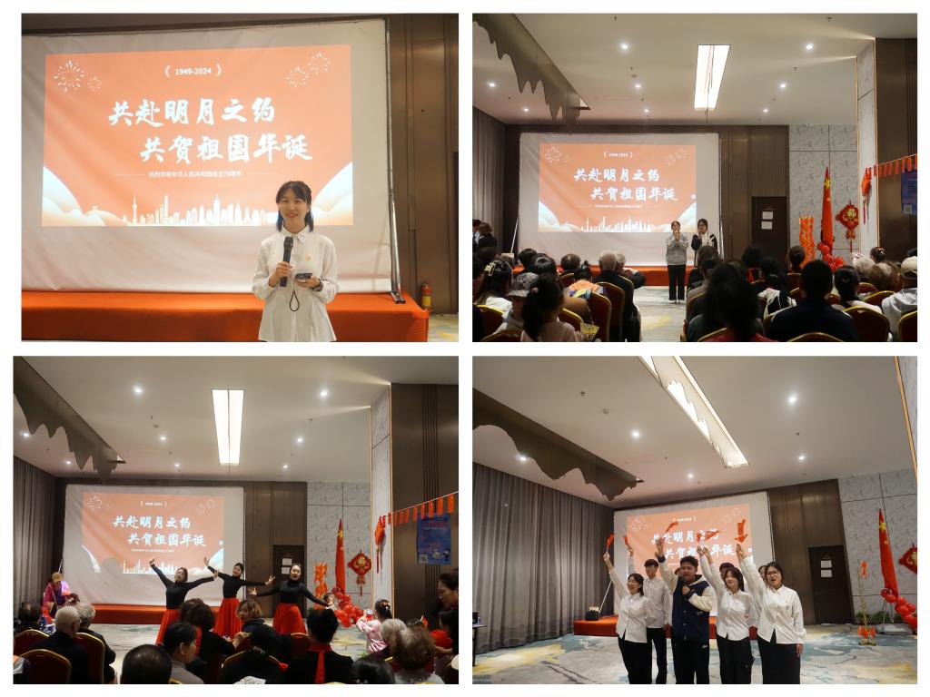 青锋志愿服务队受邀为华茂城社区居民筹备国庆晚会,志愿者们精心编排节目,积极配合社区,主动承担晚会主持、现场布置、秩序维护等工作。一首首歌曲、一支支舞蹈,展现了青年学生朝气蓬勃的精神风貌。最后,志愿者们共同挥舞国旗,深情合唱《我和我的祖国》,表达对党的无限忠诚和对国家繁荣昌盛的美好祝愿,活动现场气氛热烈,社区居民纷纷加入,共同高歌礼赞盛世华章。在这场聚民心、暖人心、筑同心的晚会现场,志愿者们通过精彩纷呈的文艺表演,为社区居民带来更多的欢乐和温暖。