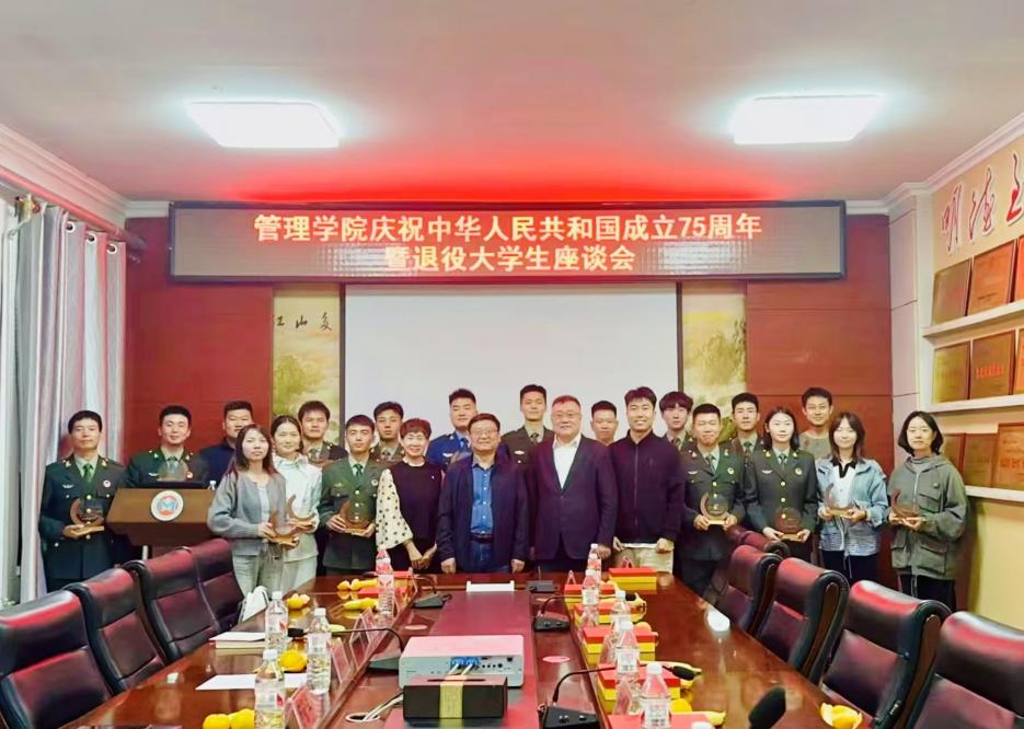 为庆祝中华人民共和国成立75周年,进一步贯彻落实习近平强军思想,深入了解退役大学生的思想、学习及生活情况,扎实做好退役大学生的教育管理与服务工作,为他们搭建更广阔的发展平台,鼓励他们在校园内挺膺担当,树立青年榜样。9月28日晚,管理学院组织召开庆祝中华人民共和国成立75周年暨退役大学生座谈会,学生处处长、武装部部长邬承斌、学院党委书记何景洋、党委副书记徐海英、辅导员李东起及20余名退役大学生参加了本次座谈会,会议由徐海英主持。