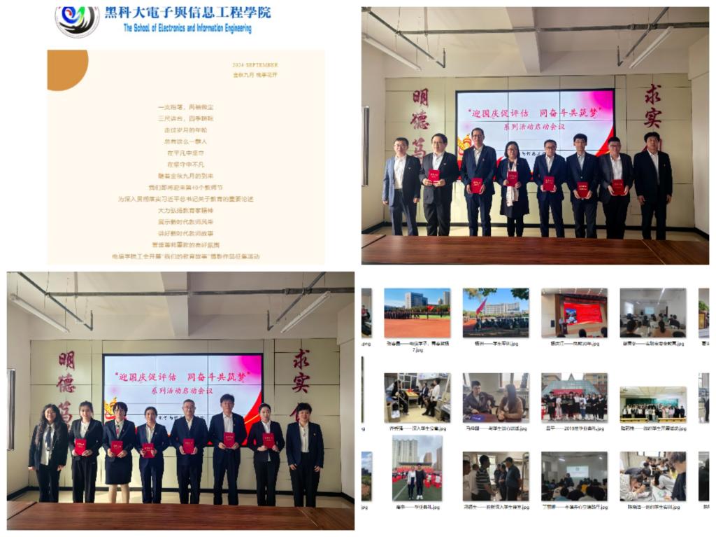 礼赞祖国,共庆华诞。在中华人民共和国成立75周年之际,电信学院于9月25日—9月30期间精心组织开展了“迎国庆促评估 同奋斗共筑梦”系列活动。系列活动包括党建知识竞赛、“迎国庆、促评估,我们的教育故事“摄影作品征集活动”、“迎国庆、学导读、促评估,本科教育教学评估知识竞赛”等。