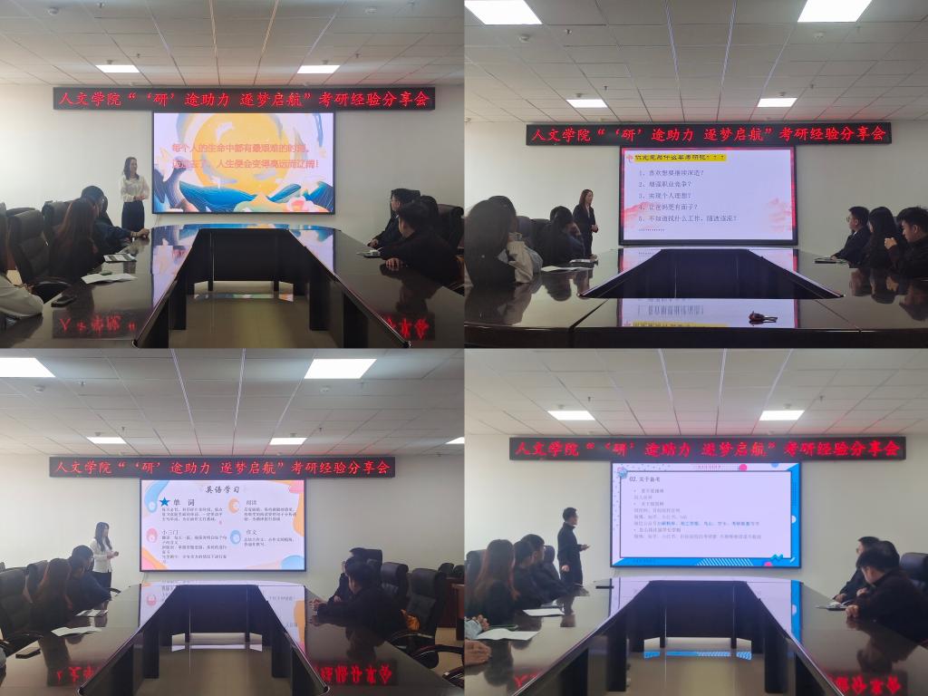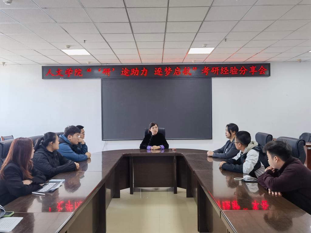 按照《开云app登录入口加强学风建设提升考研录取率实施方案》相关要求,为“做好、做全、做实”学生考研帮扶,“抓好、抓全、抓实”备考提前量,“建好,健全,建实”考研工作体系,10月8日上午,人文学院在朝阳楼0317会议室召开“‘研’途助力 逐梦启航”考研经验分享会,院长曹景萍、研究生导师李楠及2025届有考研意向学生参加会议,会议由辅导员韩雪主持。