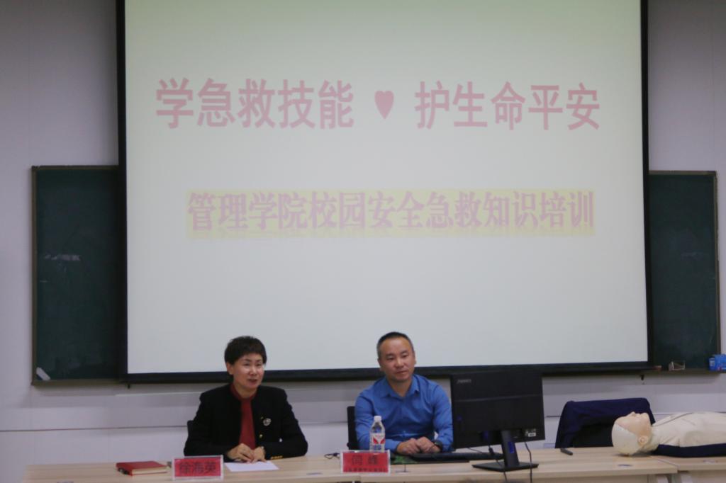 为进一步强化学生安全意识,普及急救知识与技能,提高学生在面对突发情况时开展自救互救的行为能力,管理学院于10月25日18:00开展以“学急救技能 护生命平安”为主题的校园安全急救知识培训。本次培训特邀哈尔滨市120急救中心南岗第二分中心闫峰主任为主讲,由管理学院党委副书记徐海英主持,全体辅导员及学生代表130余人参加此次培训。