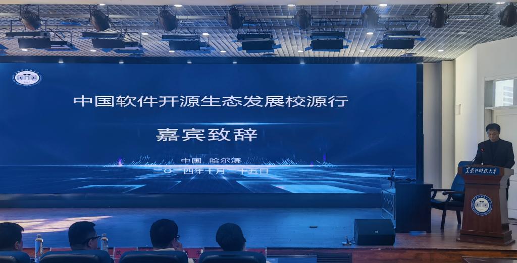 计算机学院党委书记胡晓锋致欢迎词,对与会领导、嘉宾和企业专家的到来表示热烈欢迎,对行业协会、北京校友会和企业对学院发展给予的关心、支持表示了衷心感谢,强调开源软件的快速发展促进了技术创新、加速产业转型、为数字经济的蓬勃发展注入了强大动力,号召老师、同学们深入交流,持续提升人才培养质量。