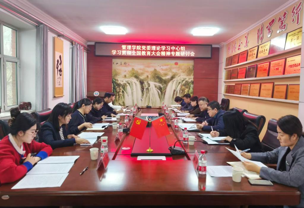 为深入学习贯彻习近平总书记重要讲话和全国教育大会精神,扎实做好习近平同志《论教育》学习宣传工作,11月26日,管理学院在三楼会议室召开党委理论学习中心组学习贯彻全国教育大会精神专题研讨会。经济学院党委书记雷金屹等党委理论学习中心组成员一行6人列席会议,管理学院党委理论学习中心组成员参加会议,会议由管理学院党委书记何景洋主持。