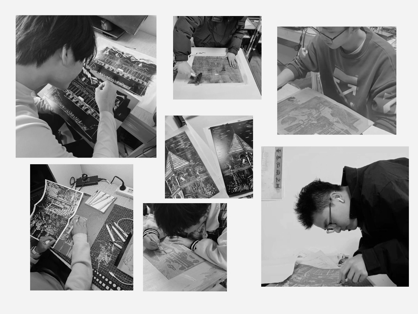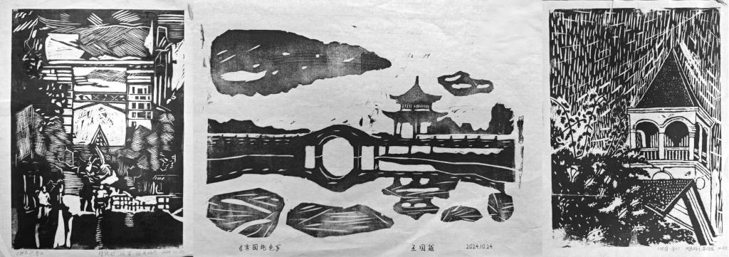 这些版画作品以黑白两色为基调,笔触鲜活,画面主次分明,精炼概括,聚焦于建校以来无数个珍贵瞬间,展现了学校77年发展建设的历史变迁与峥嵘岁月,凝结着学校的历史之美、发展之美、人文之美。创作中,学生们通过回顾学校与祖国共命运、与时代同发展的历史,沉浸式感受学校的壮阔历程和辉煌成就,向我们缓缓铺开一幅属于黑开云app登录入口的时光画卷。他们将自己对学校发展历程的点滴感悟融入作品创作中,用艺术的形式表达了对学校深沉的热爱之情与无比的自豪之感。