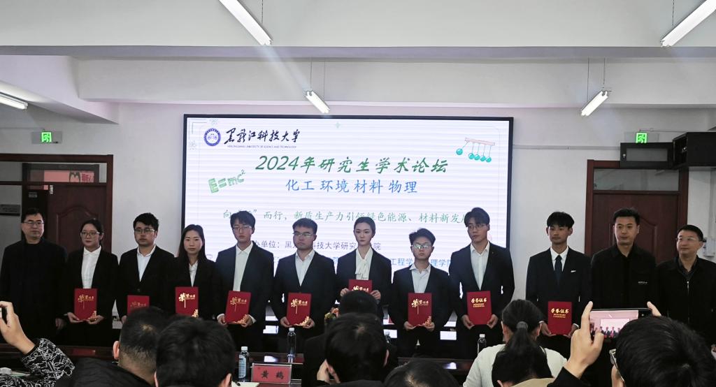 环化学院院长熊楚安致开幕词,他对本次论坛的组织情况进行了介绍,对研究生在论坛期间展现的科研热情和能力给予高度评价,并祝福各位导师和研究生在科研道路上再出新成果、勇攀新高峰。材料学院院长徐家文宣读论坛优秀论文获奖名单。与会领导为9名优秀论文获奖者颁发了荣誉证书。
