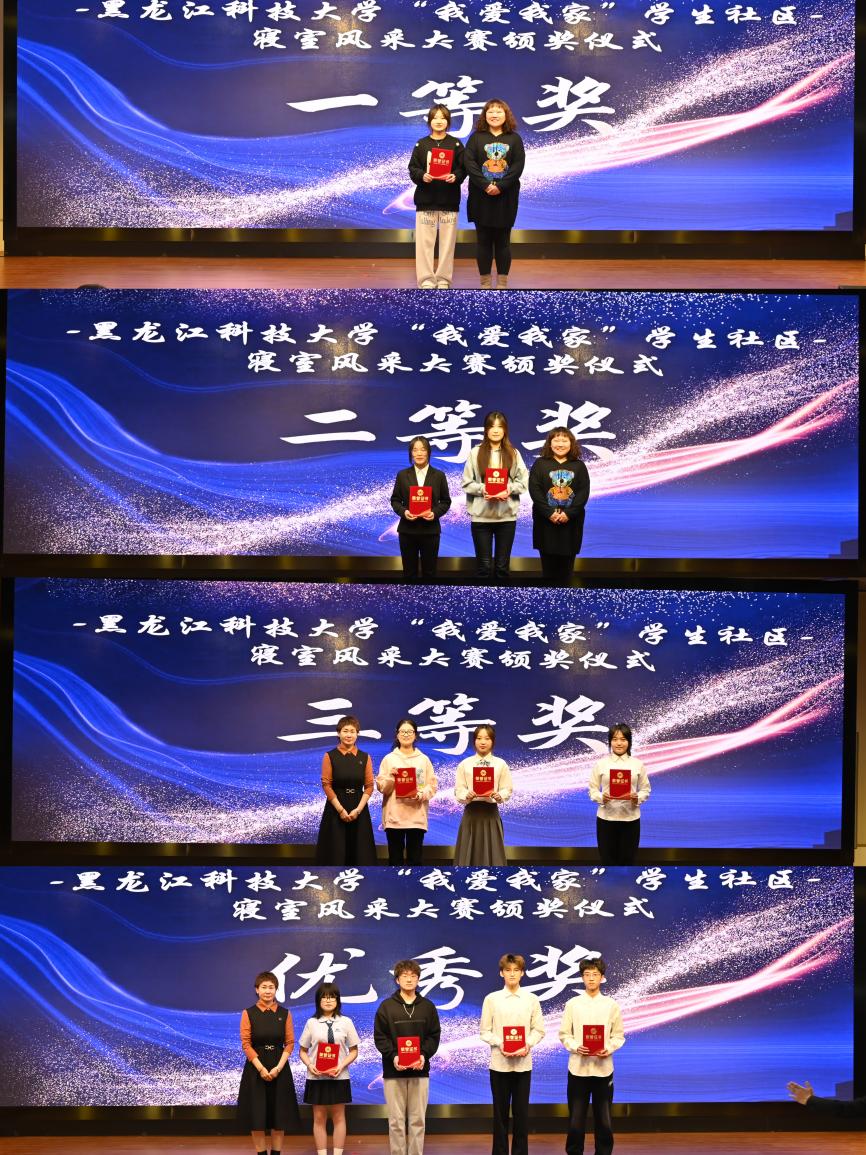 “我爱我家”寝室风采大赛由微视频和才艺展示两部分构成,经学院推荐,学校初赛,共有十支代表队进入决赛。经过激烈的角逐,管理学院代表队荣获一等奖;电子与信息工程学院代表队、马克思主义学院代表队荣获二等奖;材料科学与工程学院代表队、建筑工程学院代表队、电气与控制工程学院代表队荣获三等奖;安全工程学院代表队、环境与化工学院代表队、计算机与信息工程学院代表队、外国语学院代表队获得优秀奖。