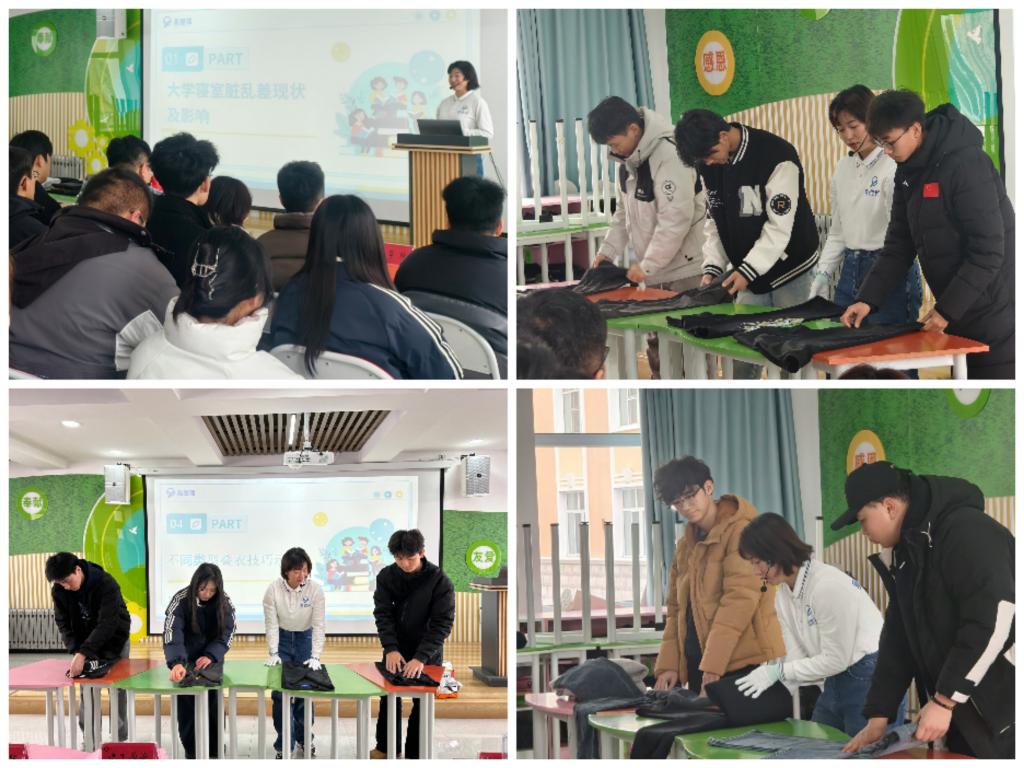 为进一步加强文明宿舍建设,帮助同学们提升空间整理以及物品收纳能力,3月27日,学生处组织开展“‘宿’说收纳之趣”宿舍整理收纳培训活动。各学院辅导员及学生代表参加本次培训,培训由学生处学生管理科王磊主持。