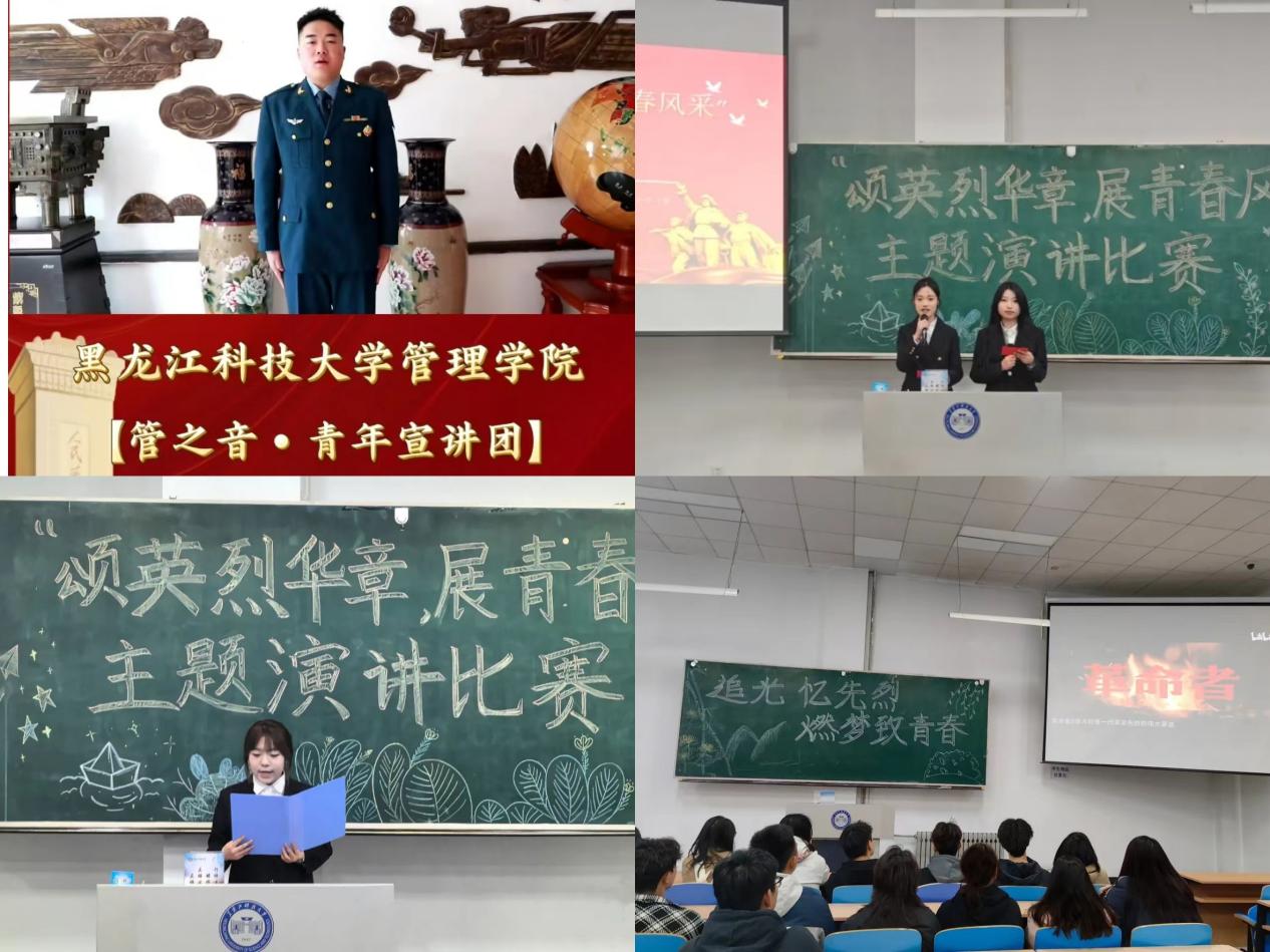 追红色光影,展报国豪情。学院组织开展了“追光忆先烈,燃梦致青春”红色主题观影活动和“颂英烈华章,展青春风采”演讲比赛,在光影流转间接受精神洗礼,在句句铿锵中回味历史韵味,充分激发了青年学生的爱国热情和社会责任感。“管之音”青年宣讲团成员退役大学生郑皓文以《清明记忆》为题进行宣讲,带着对历史的敬畏与对先辈的敬仰,走进那些动人的红色记忆,感受先辈们的伟大精神与坚定信念。