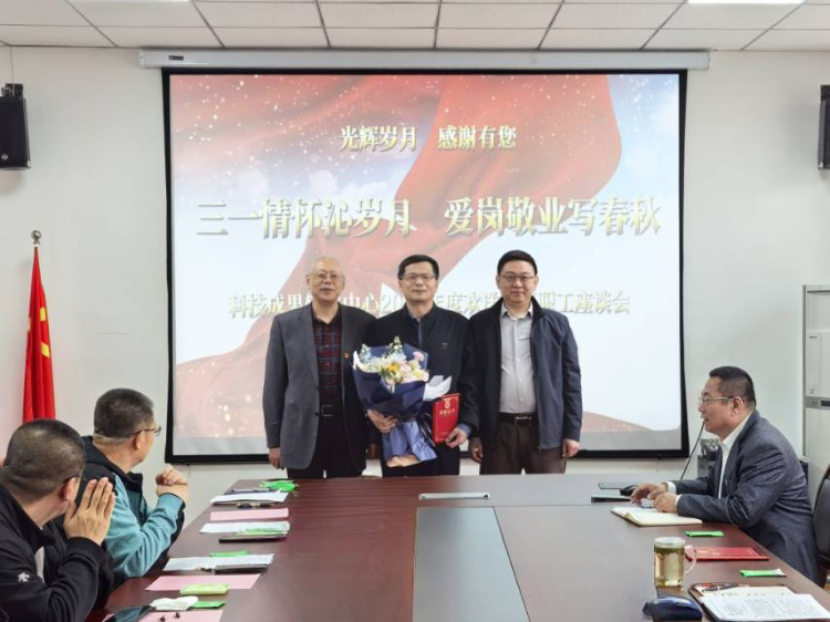 4月11日下午,科技成果转化中心在202会议室举办了以“三一情怀沁岁月・爱岗敬业写春秋”为主题的2025年度欢送荣退职工座谈会。中心班子成员、部门负责人、工会委员和退休职工芦少春参加座谈会。座谈会由中心副主任毕强主持。