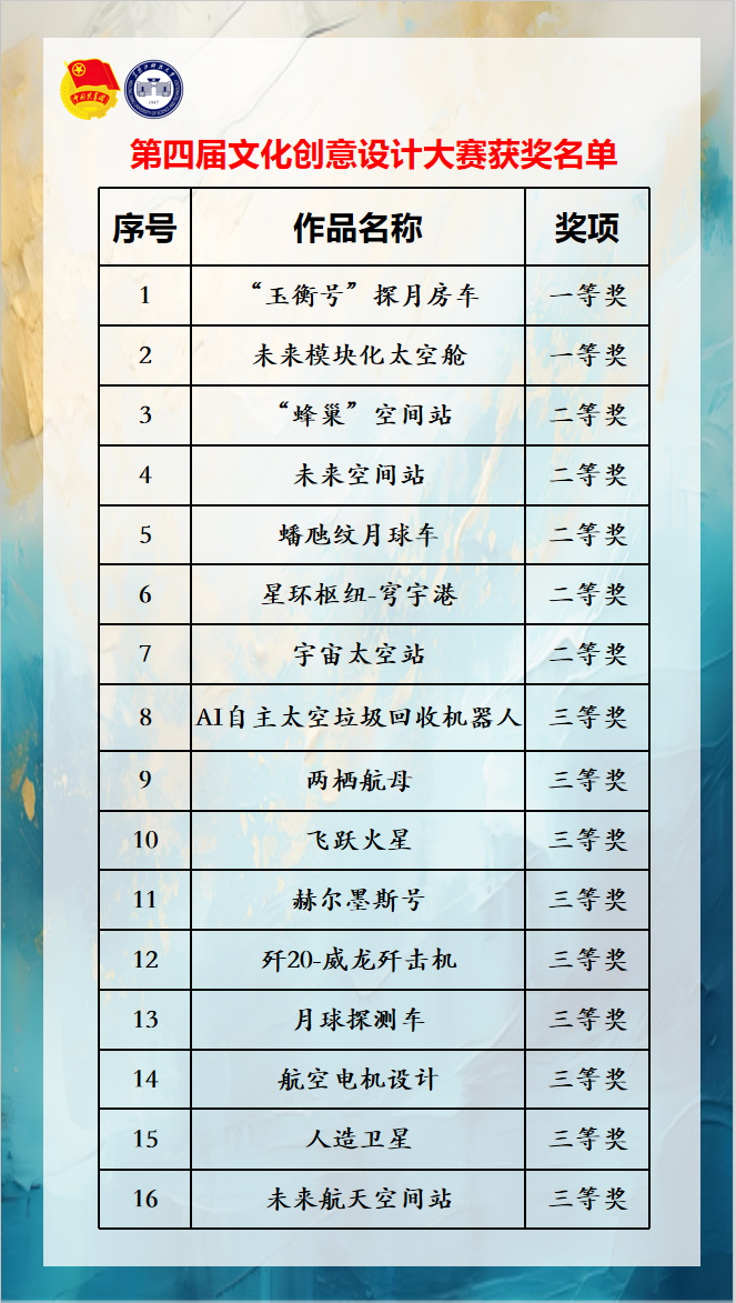 本次文化创意设计大赛是校团委、创新创业学院在“学风建设活动月”活动中谋划设计的一项重要科创赛事,旨在激励广大青年学生强化创新意识、形成创新共识,不断激发青年学生对航天领域的热情。下一步,学校将持续举办系列科创赛事,努力营造浓郁的创新创业校园氛围,不断促进学校优良学风形成。