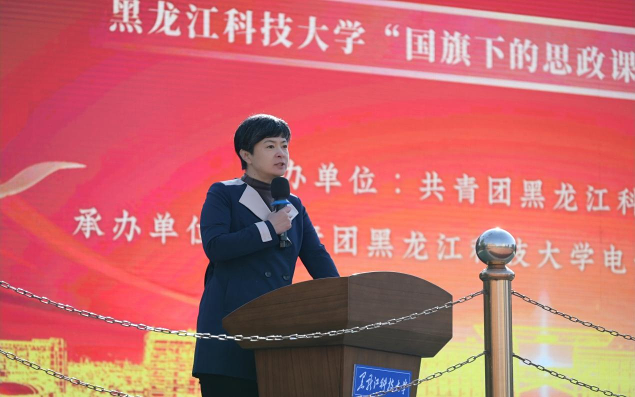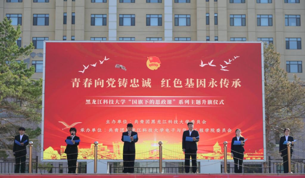 学院正处级辅导员吕平为师生讲授“国旗下的思政课——传承红色基因,勇担时代使命”。她勉励青年学子以信仰铸就忠诚,以行动践行担当,在实现中华民族伟大复兴的征程中贡献青春力量。仪式最后,全体师生齐唱校歌《江畔朝阳》,在激昂的旋律中凝聚奋进共识。学院团委负责人表示,本次活动是深化爱国主义教育的重要实践,未来将持续开展红色主题教育,引导青年学子听党话、跟党走。