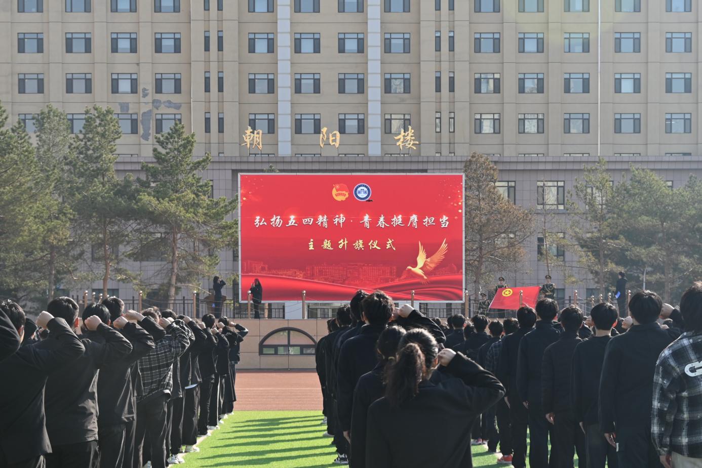 四名退伍学生代表进行国旗下的演讲,他们用洪亮而坚定的声音奏响“五四”精神在参军报国实践中的青春乐章,号召团员青年弘扬“爱国、进步、民主、科学”的五四精神,以奋斗之青春践行“请党放心,强国有我”的铮铮誓言。