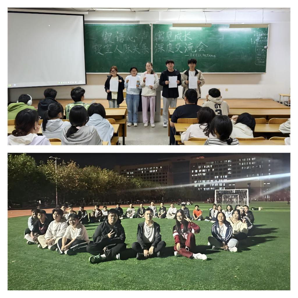 多元活动与主题班会深度联动,全面深化情感共鸣。马克思主义学院、理学院开展签署寝室公约、素质拓展训练等特色活动,突破传统交流范式,引导学生在协作实践中深化情感纽带,构筑和谐寝室人际关系网络。