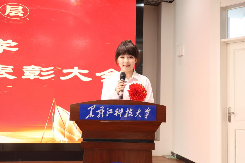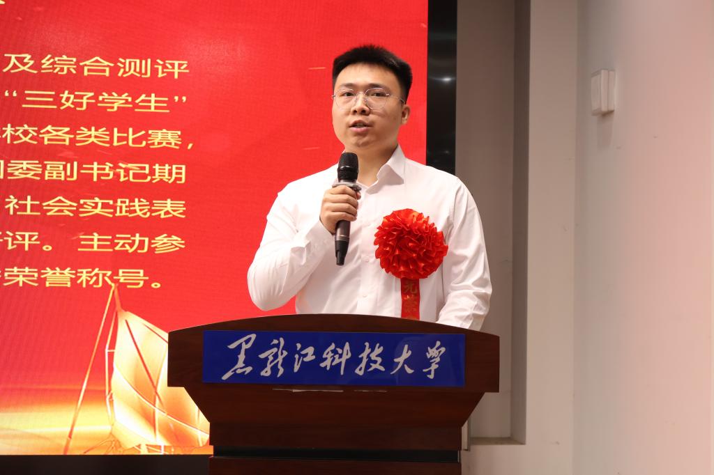 表彰大会在庄重热烈的氛围中拉开帷幕。李晓杰老师宣读《2025届毕业生“基层就业之星”获奖名单》,与会领导和老师为获奖学生代表颁发荣誉证书。三位即将奔赴祖国不同岗位建功立业的优秀毕业生分享了他们的选择与感悟,机械学院机械 21-7班李双洋同学,以一名黑河市嫩江市基层选调生的身份,深情讲述了自己从萌生扎根基层的想法,到克服重重困难备考的心路历程,字里行间流露出服务群众的坚定初心;环化学院应化 21-2 班徐子健同学结合自身专业,誓言要在中煤陕西能源化工有限公司的基层岗位上,将课堂知识转化为实践成果,展现出专业与实践结合的创新探索;管理学院数管21-3 班王鹤怡同学作为黑龙江省边远地区兴边富民志愿者代表,用一个个鲜活的故事,描绘出志愿者们在艰苦环境中,用青春力量助力边疆发展的动人画卷。三位同学的发言,彰显了新时代开云app登录入口学子将个人理想融入国家发展大局的责任担当,引发全场师生强烈共鸣。