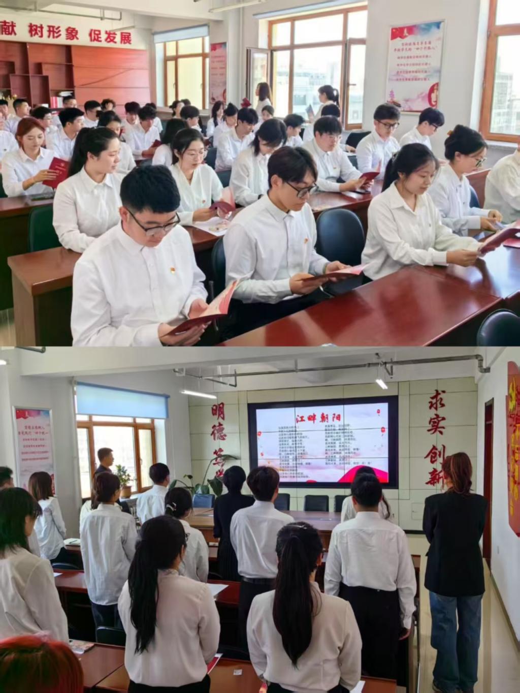 为庆祝中国共产党成立104周年,深入贯彻中央八项规定精神学习教育,按照学院2025届毕业生文明离校主题教育活动方案,电信学院于6月17日上午组织开展“铭记初心跟党走 砥砺前行再出发”毕业生党员主题党日活动,党委书记齐秀强、正处级辅导员吕平,全体学生支部书记参加活动。活动由副处级辅导员高宇主持。