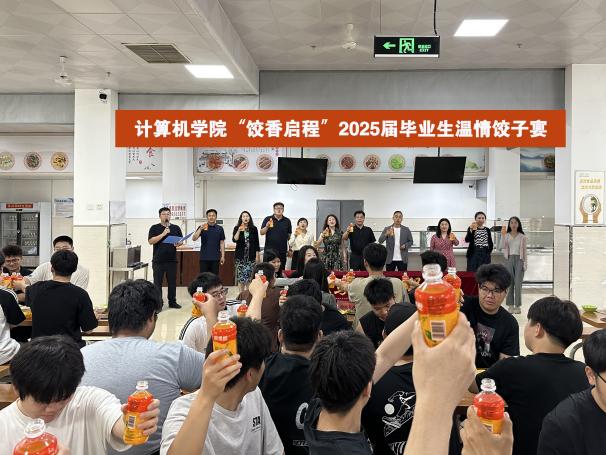 盛夏蝉鸣起,骊歌再奏响。为送别即将踏上人生新征程的毕业生,6月17日上午,计算机学院在沁香园食堂二楼温情举办毕业生饺子宴活动。学院领导班子、毕业生班主任、全体辅导员与2025届毕业生共同参与,为即将离校的学子送上真挚祝福。
