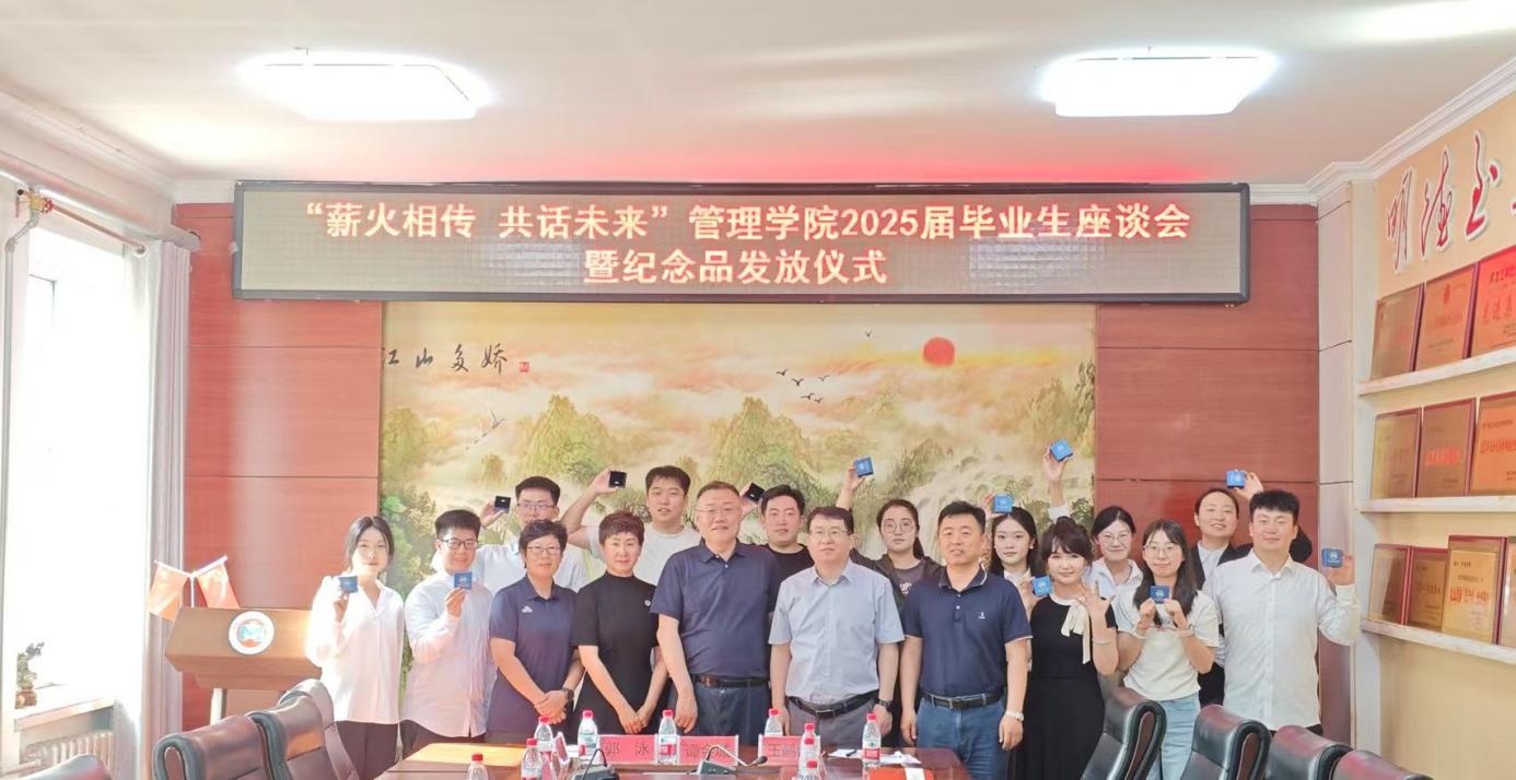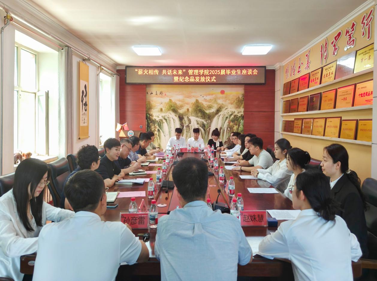 为更好地倾听毕业生心声,积极引导毕业生为学院发展献计献策,结合学校2025届毕业生主题教育“十个一”活动的相关要求,管理学院于6月17日下午在学院三楼会议室召开“薪火相传·共话未来”2025届毕业生座谈会暨纪念品发放仪式。学院领导班子、毕业班辅导员及2025届毕业生代表参加了座谈。会议由党委副书记徐海英主持。