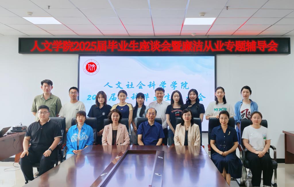 开展“以心致新”毕业生座谈会。6月18日,人文学院举办2025届毕业生座谈会暨廉洁从业专题辅导会,学校纪委书记、监察专员王延高受邀出席,与学院领导班子成员、全体辅导员以及毕业生代表深入交流。会上,毕业生围绕学校人才培养、管理服务、建设发展等方面建言献策,王延高结合职场纪律规范开展廉洁从业专题辅导。