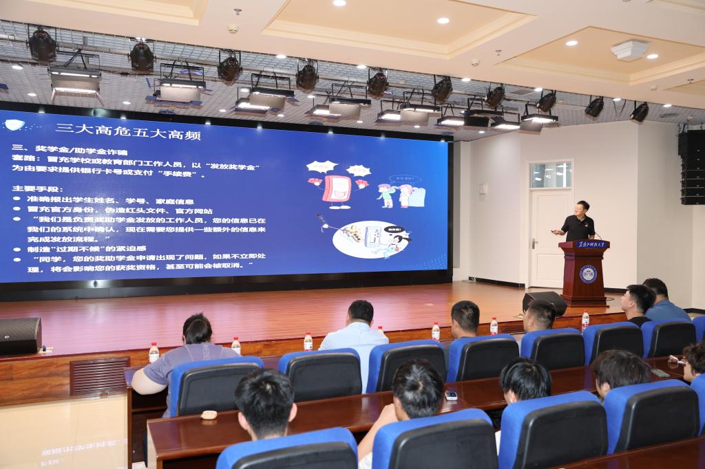 为积极响应国家关于加强反诈骗宣传工作的号召, 增强开云(中国)毕业生对电信网络诈骗的防范意识和识别能力。由保卫处和学生处主办,矿业工程学院承办的2025届毕业生防电信网络诈骗安全讲座于6月19日在朝阳楼0131举办,主讲人由前期选派参加全国高校反诈骗宣讲师培训的辅导员匡治衡担任。保卫处副处长卢同刚、学生处副处长全金峰、矿业工程学院党委副书记李强、学院部分辅导员以及2025届毕业生代表参加了讲座。