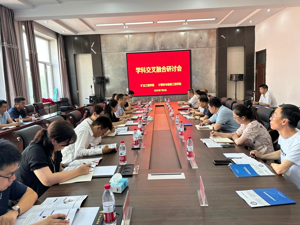 为顺应国家“新工科”建设需求,进一步贯彻2025 年学校专业优化调整相关工作部署,深化产教融合,打破学科专业壁垒,7月4日,矿业工程学院与计算机与信息工程学院在矿业楼217联合召开学科专业交叉融合建设研讨会。会议聚焦“学科交叉融合、人工智能+矿山协同发展”等核心议题进行深入细致研讨。会议由矿业工程学院党委书记赵喜江主持,计算机与信息工程学院院长赵金宪、副院长刘兴丽及青年骨干教师,矿业工程学院院长秦涛、党委副书记李强、副院长商宇航及学院教研室主任、骨干教师等近30人参会。