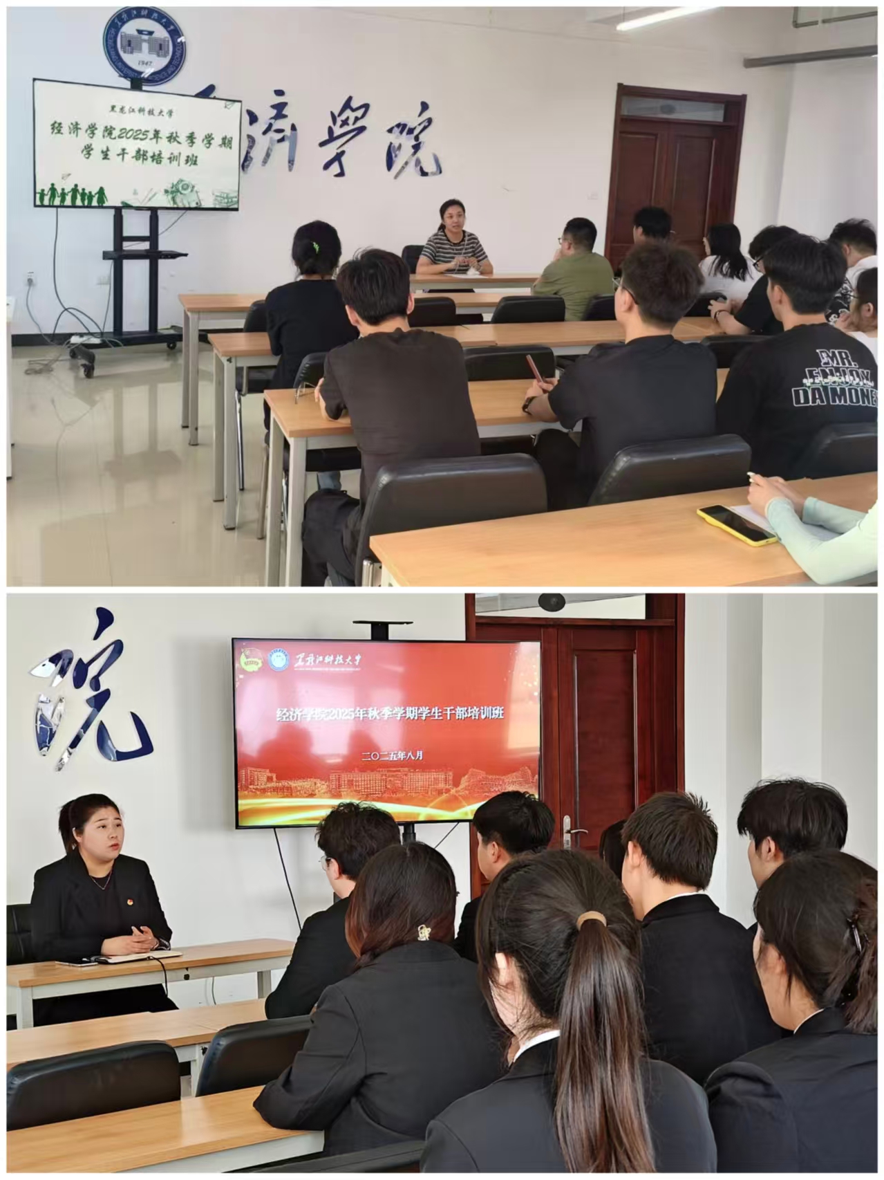 强化骨干能力建设,发挥榜样引领作用。为加强学生骨干的引领示范作用,全面提升其综合能力,学院组织开展了2025年秋季学期学生干部培训班。参训学生骨干对2025年上半年的工作进行了全面总结,学工办公室主任与团委书记分别就各学生组织新学期的重点工作进行了系统部署与安排。