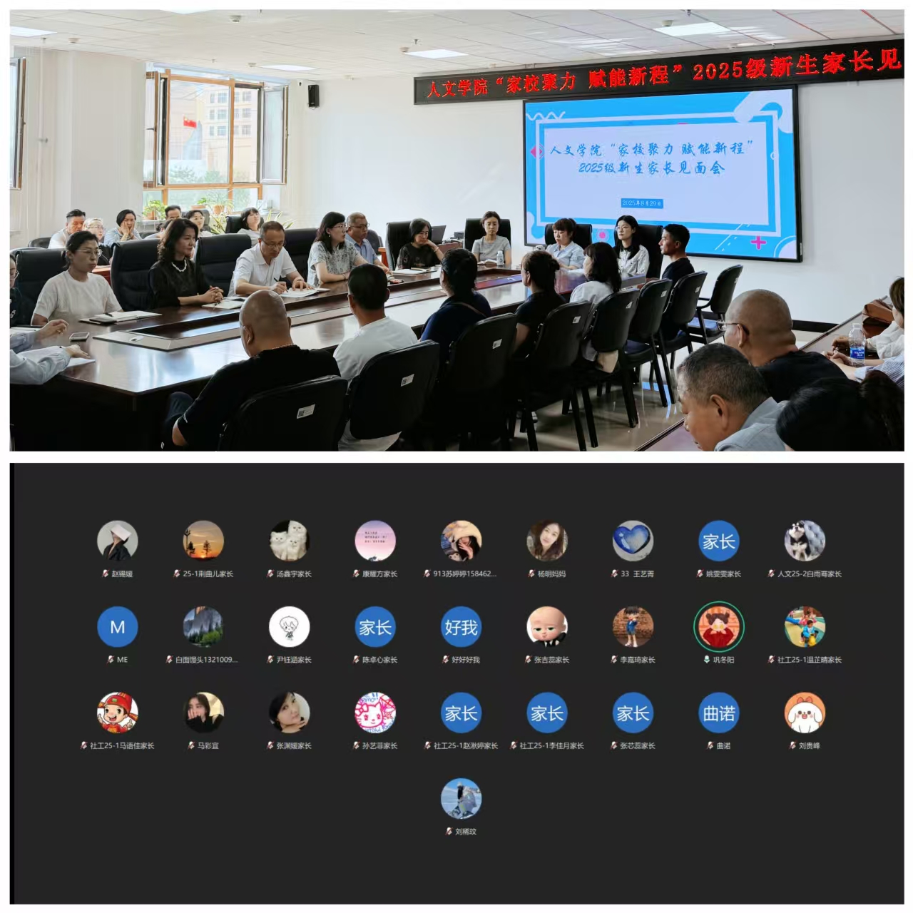 为深化家校协同,赋能新生成长,8月29日下午,人文学院于朝阳楼0317会议室召开“家校聚力 赋能新程”2025级新生家长见面会。学院领导班子成员、各教研室主任、各年级辅导员、新生班主任出席见面会,102位家长通过“线上+线下”融合模式参与。见面会由党委副书记杨凤娟主持。