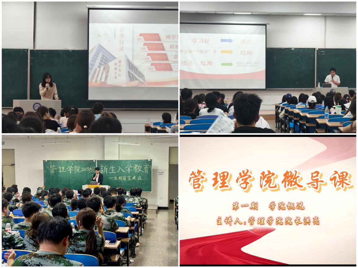 为助力2025级新生尽快适应大学生活、明确发展方向,管理学院严格遵循学校《2025级学生入学教育方案》和《2025级学生入学教育活动参考指南》,于前置准备与入校适应两个阶段,精心组织了一系列新生入学教育活动,为新生的全面成长和成才奠定了坚实基础。