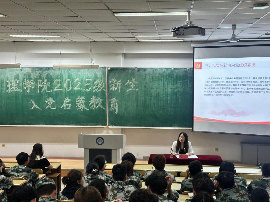 入党启蒙教育,点亮理想信念灯塔。学院邀请学校党委组织部副部长林松,为新生开展入党启蒙教育。林松以“坚定理想信念 不负青春韶华”为主题,从“认识伟大光荣正确的中国共产党”“端正入党动机接续奋斗”“以实际行动向党组织靠拢”三个方面,带领学生回顾中国共产党百年奋斗历程与辉煌成就,鼓励新生在学习中深耕、品德上修身、实践中成长,主动向党组织靠拢,以优秀表现接受考验。