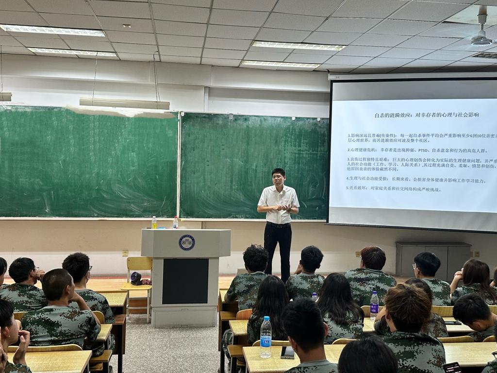 心理健康引导,筑牢健康成长根基。学院邀请环化学院副处级辅导员周惠玉,以“关注心理健康,学会自我调节”为主题,为新生开展心理健康专题讲座,针对新生可能出现的适应压力、人际关系困扰等问题,通过案例分析、方法讲解,传授情绪管理、压力调节的实用技巧,帮助新生正确认识心理健康,掌握科学调适方法,为顺利开启大学生活做好心理准备。