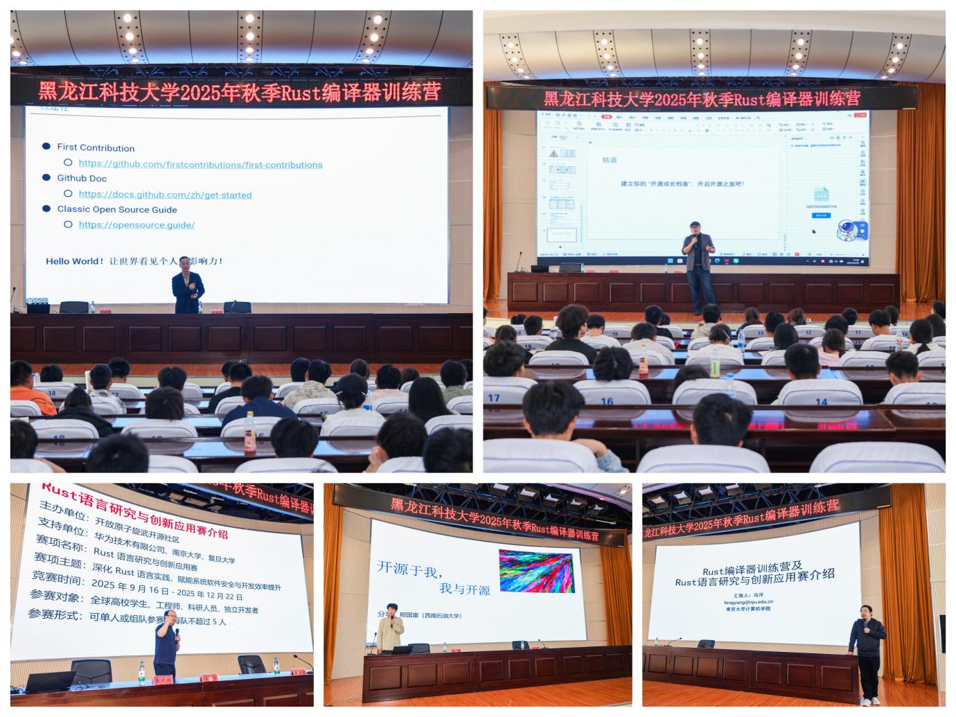 9月20日,由计算机与信息工程学院承办的2025年秋季Rust编译器训练营在学校信息报告厅顺利举办。本次活动作为CCF校园行开云app登录入口站的核心环节,特邀华为专家马全一、联想集团张文杰、南京大学汪亮、冯洋、北京科技大学韩晓阳、西南石油大学邢国富等行业专家和精英担任讲师,学院200余名学生参与培训。
