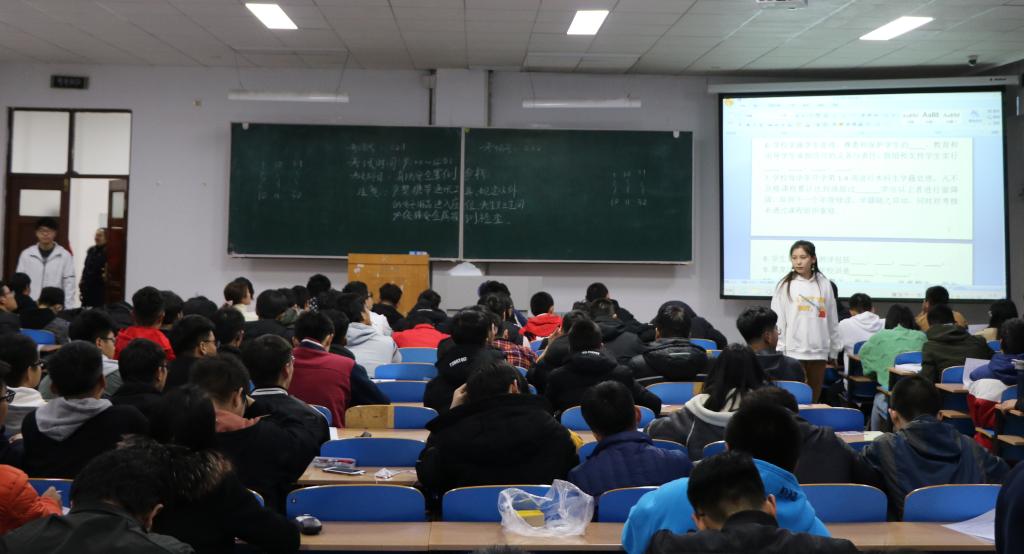 本次竞赛活动采取闭卷形式进行,考试时长一个小时。将全体2018级学生划分在6个考场进行考试。活动结束后,学院组织专门力量对学生竞赛试卷进行批阅,对在考试中涌现出的优秀班级和优秀个人进行表彰奖励,对没有达到预期成绩的班级和个人进行了专题延伸教育。