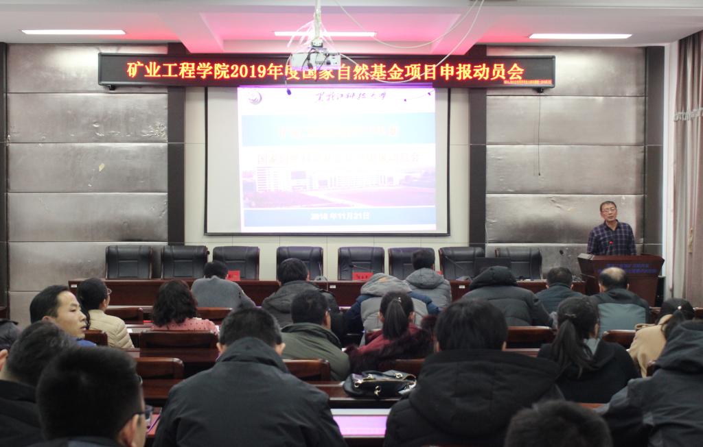 11月27日下午,矿业工程学院在学院二楼学术报告厅组织召开了2019年度国家自然科学基金项目申报工作动员大会。全体教师参加了动员会。本次会议由科研副院长吕一波主持。