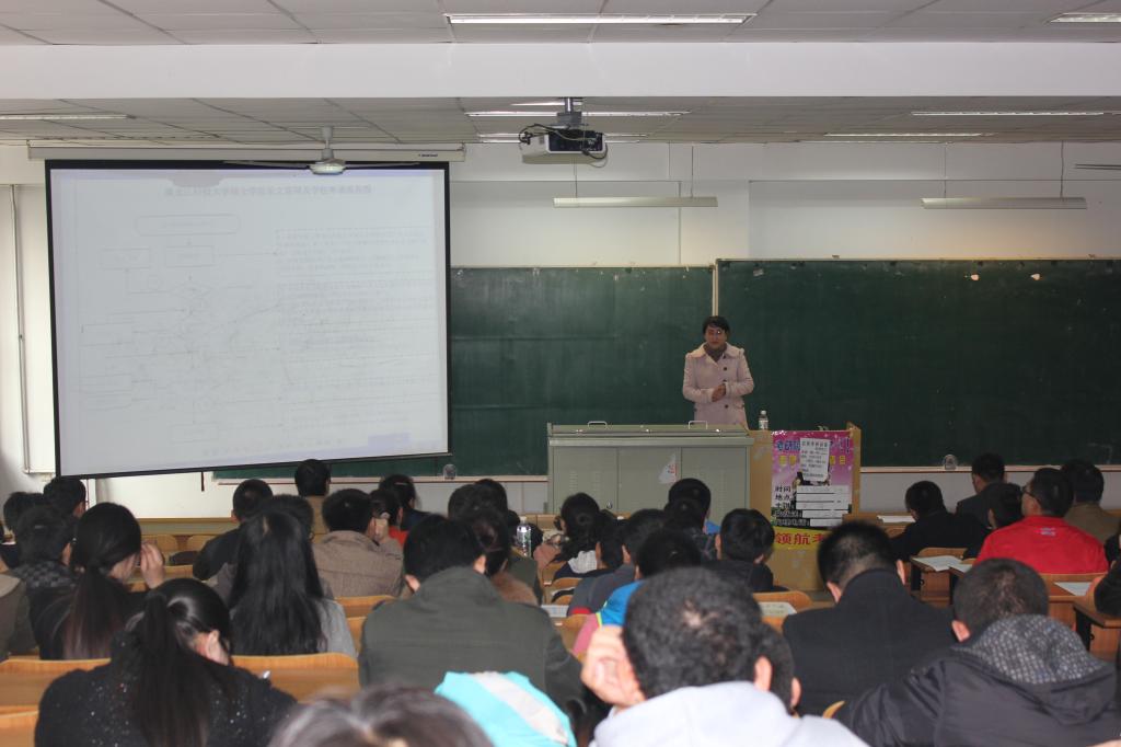 安全学院为即将考研的毕业生做了主题为“坦然面对就业、从容迎接考研”的专题讲座,使学生了解考研的相关事宜以及减轻考研的压力。会上,安全学院学工办主任杨凤娟分析了当前毕业生的就业压力,并从四个方面鼓励考研的毕业生。一是鼓励大家要调整心态,尽自己最大努力去复习并用积极上进的心态去面对考研;二是鼓励大家要明确目标,告诉毕业生要给自己确定一个明确的目标,只要有了方向才能有前进的动力;三是鼓励大家要看清形势,为毕业生对他们考研意向进行了分析;四是鼓励大家要克服困难,坚持到最后。随后,王丹老师从“安全科学与工程学科建设概况及特色优势”、“国家级中心实验室概况及研究团队与特色成果”、 “安全科学与工程学科硕士研究生培养方向及导师团队简介”三个方面对本院硕士生情况进行了详细的讲解。讲座不仅为考研的学子们提供沟通的桥梁,让他们更深入了解和关注考研动向,也激发了同学们全心考研的斗志,使学子们明确了奋斗目标,而且进一步优化了校园的学习风尚,促进了校园浓郁学风的形成。
