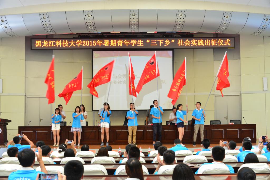校团委书记薛立刚对2015年暑期青年学生“三下乡”社会实践团队基本情况进行了介绍并作以工作部署,与重点团队指导教师代表签订安全责任状。赴兰西县榆林镇中心小学实践服务团的队长思政13-1班谢丹婷同学代表本次社会实践服务团的全体成员作了表态发言。与会领导向“三下乡”重点团队进行了授旗。