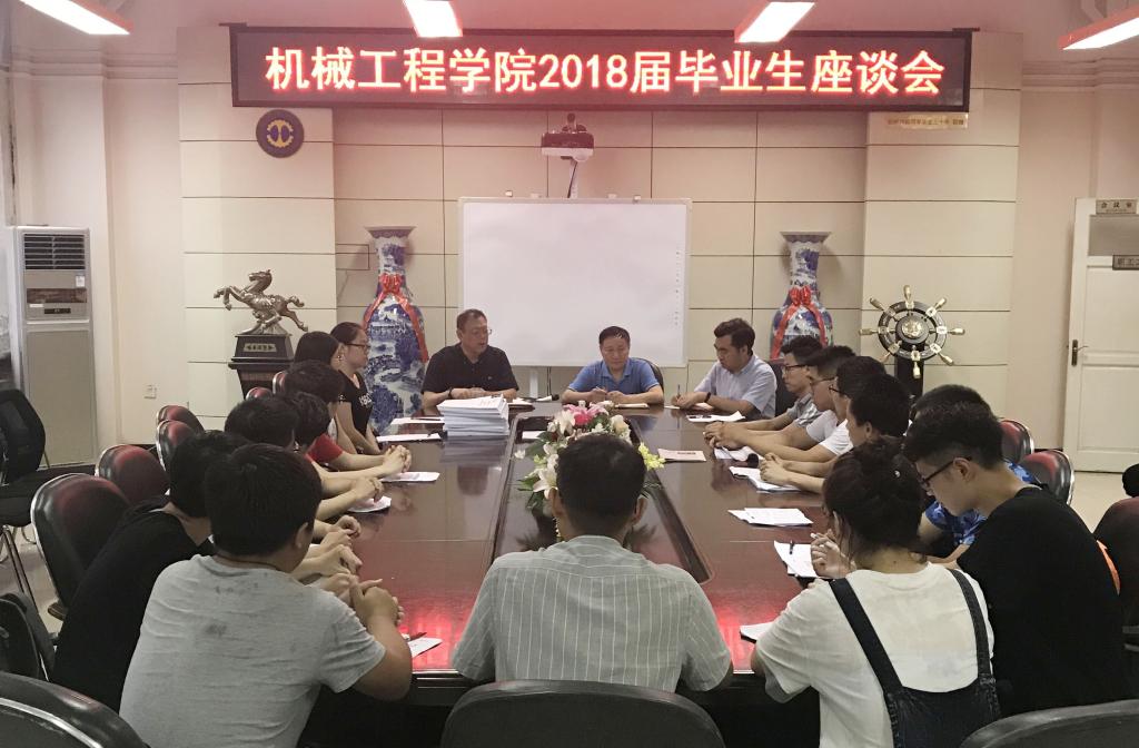 6月25日下午,机械学院在该院会议室举办了2018届毕业生座谈会。机械学院党委书记石善革、机械学院党委副书记吴新文、辅导员郝鑫、刘帅出席了会议。机械学院24名代表参加了会议。会议由吴新文副书记主持。